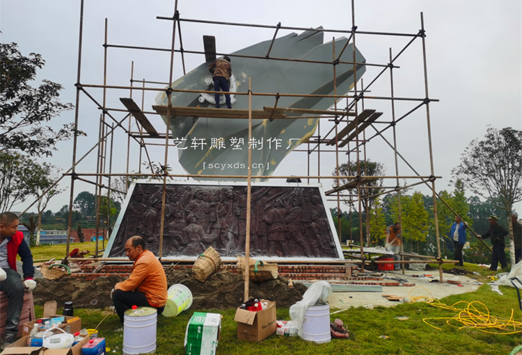 项目简介:不锈钢党旗雕塑高6米8-眉山市青神县锦绣大道武警支队