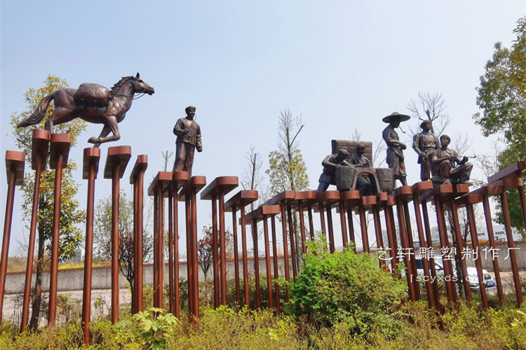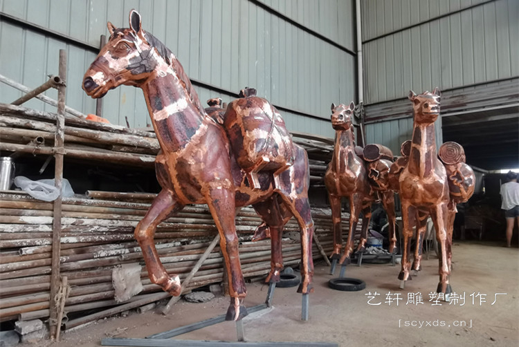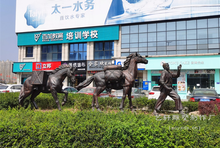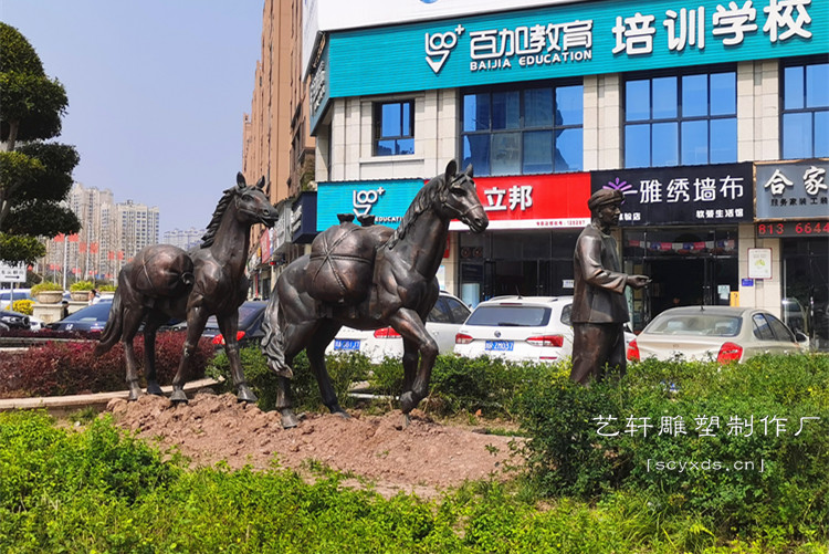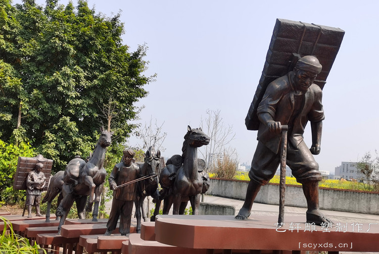 项目简介:自贡市荣县东川大道-茶马古代马帮雕塑-紫铜锻造