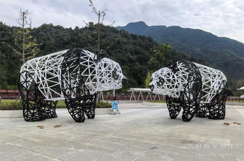 项目地址:雅安市芦山县大川镇国家熊猫公园 项目简介:不锈钢圆管熊猫雕塑长7米