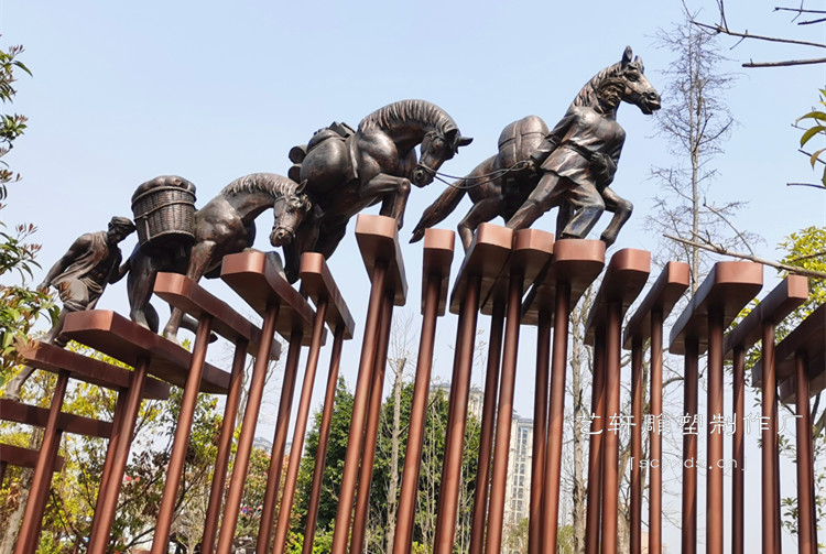 项目简介:自贡市荣县东川大道-茶马古代马帮雕塑-紫铜锻造