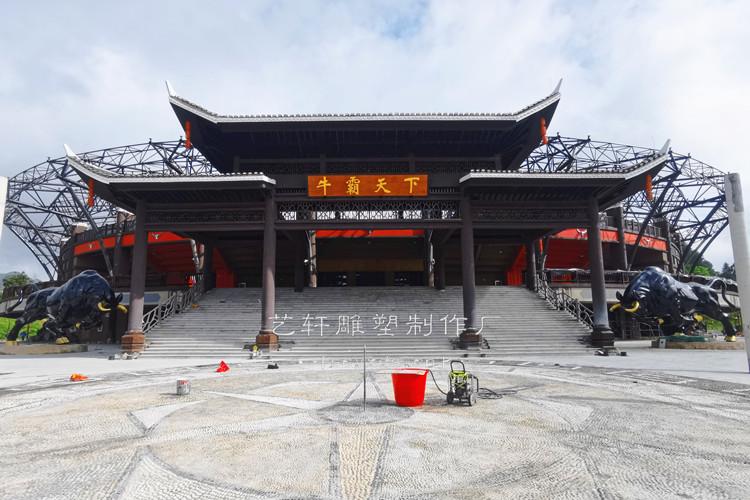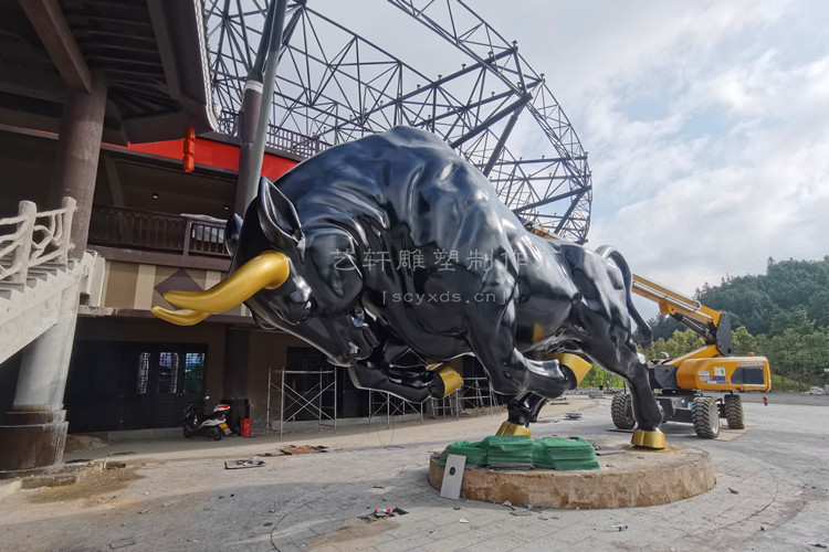 项目简介:贵州黔东南苗族侗族自治州丹寨县不锈钢锻造斗牛雕塑长8.6米高4.4米
